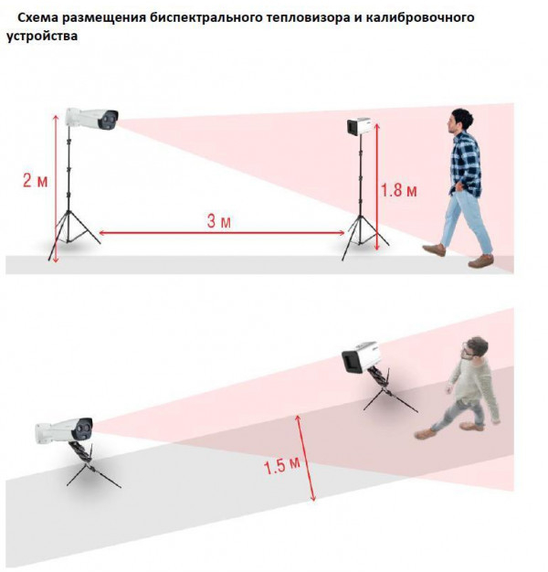 RUBEZH RV-4RTMK-M.BS400L13/M4-WSO/2320-1 - комплекс для 1-ой зоны контроля (прохода) дистанционного, бесконтактного измерения температуры тела человека (от +30 до +450С) с точностью (±0,3°C), оперативного выявления людей с повышенной температурой, формирования светозвуковых оповещений и тревожных сообщений в таких случаях.