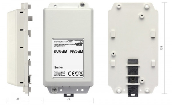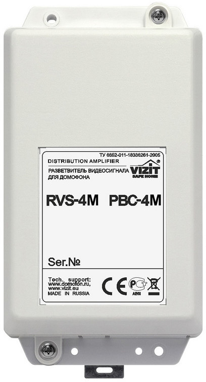 РВС-4М - разветвитель видеосигнала предназначен для подключения 4-ёх абонентских мониторов к подъездной линии связи видеодомофонов VIZIT.