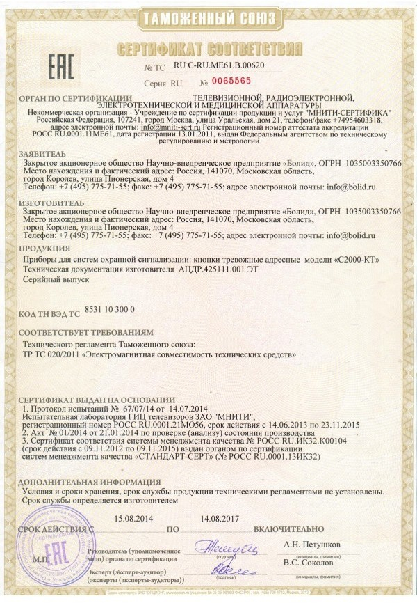 Кнопка тревожной сигнализации адресная