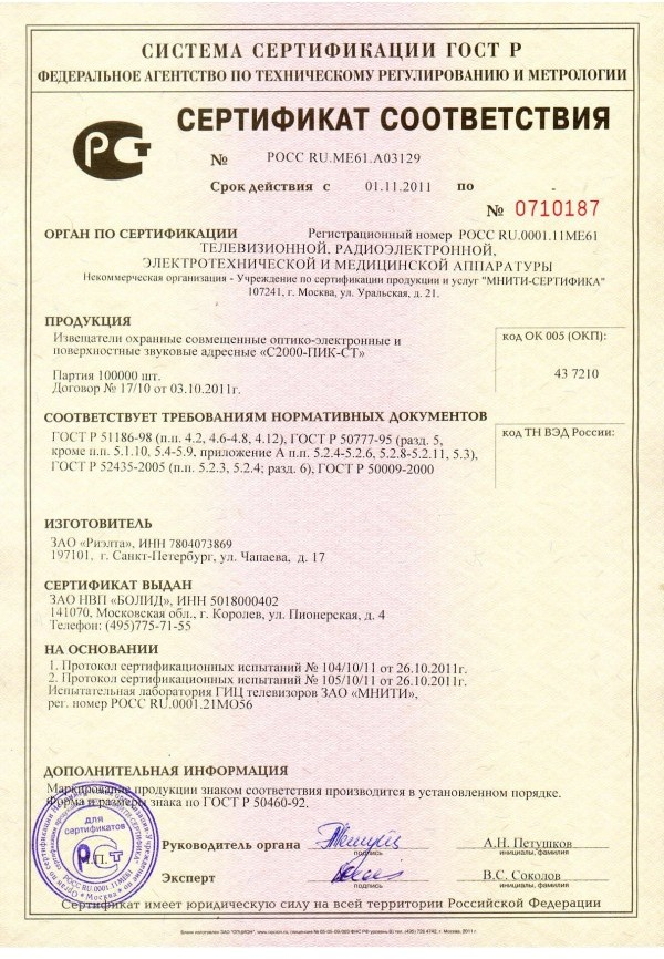 Извещатель совмещенный потолочный адресный
