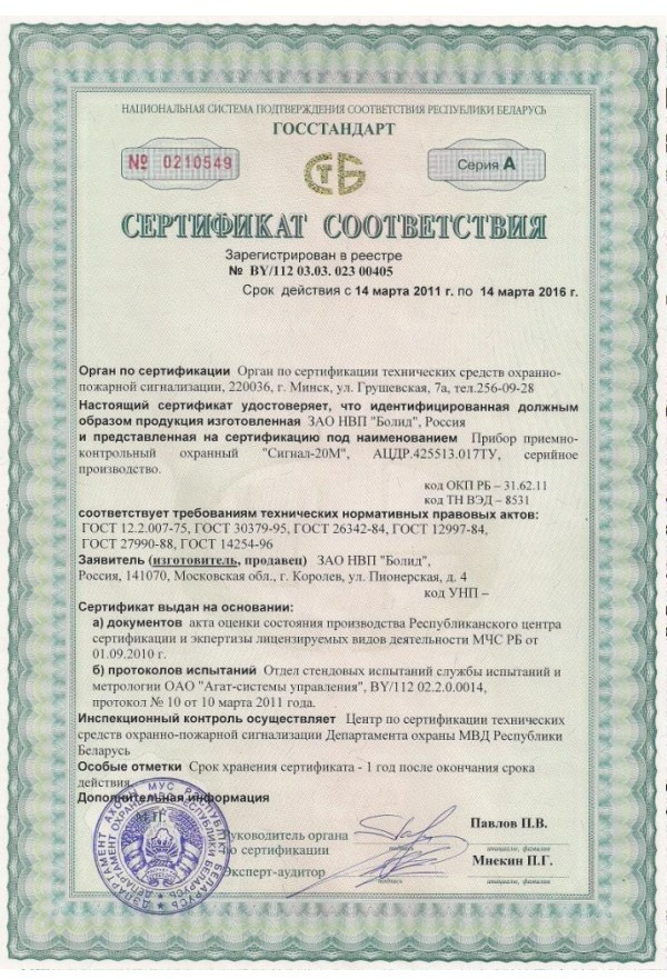 - Световой индикатор зелёного цвета для контроля работоспособности звукового извещателя