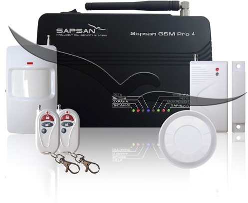 Система охранной сигнализации Sapsan GSM Pro 4 . 8 беспроводных зон., 2 проводных зоны. Беспроводные и проводные датчики, реле для дистанционного управления любым оборудованием, голосовое меню