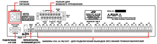 SC-216M - блок контроля линий громкоговорителей.