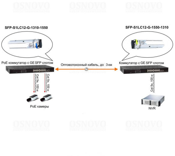 Работает в паре с SFP-S1LC12-G-1310-1550.