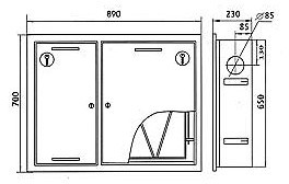 в стену, закрытый, белый, габариты 840х650х230 мм.