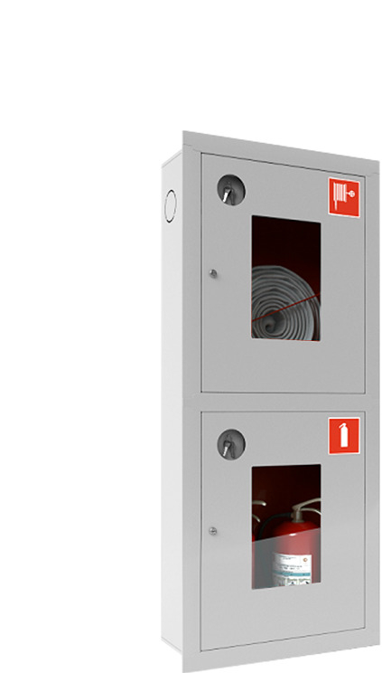 Шкаф для 2-ух пожарных кранов (вентилей), 1-го пож. рукава, 2-ух огнетушителей