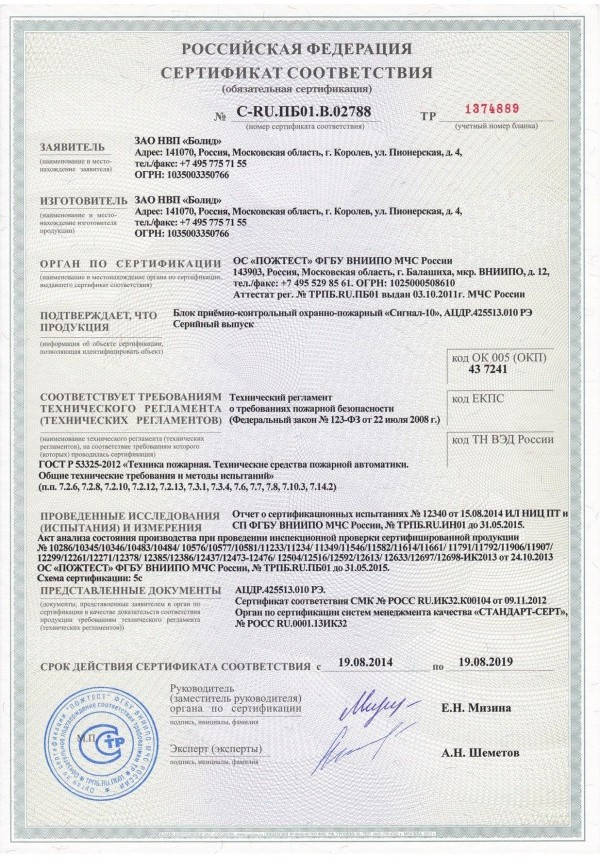 - Сигнал-10 паспорт