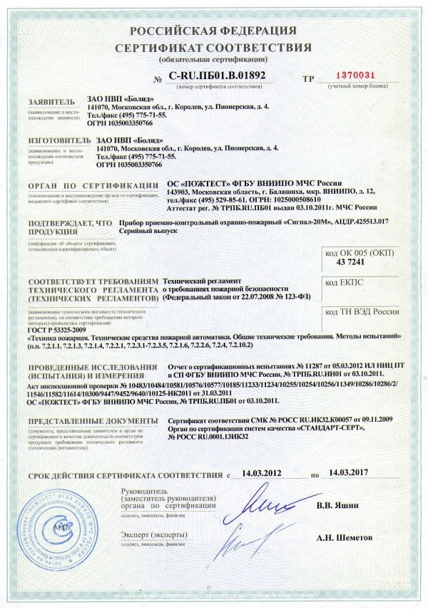 Приёмно-контрольный охранно-пожарный прибор Сигнал-20М применяется в составе системы охраны «Орион» для автономной или централизованной охраны промышленных и жилых объектов (офисов, магазинов, банков, складских помещений, жилых домов, учреждений, предприятий) от несанкционированных проникновений и пожаров. Сигнал-20М быстро завоевал популярность и стал лидером продаж среди аналогов, сочетая в себе оптимальную стоимость, долгий срок службы при высоких показателях производительности и широкий функционал, поддерживающий контроль и мониторинг 20-ти зон охранной, пожарной и тревожной сигнализации, управления звуковыми и световыми оповещателями, взятие под охрану или снятие с охраны произвольных групп шлейфов, вручную или по команде от сетевого контроллера, возможность подключения резервного ввода электропитания к дополнительному входу и многое другое.