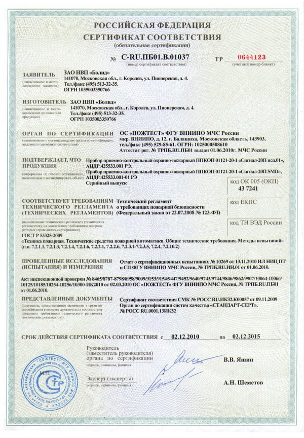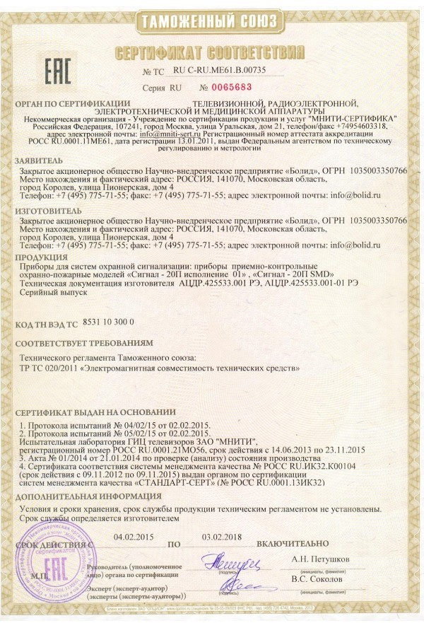 - Сигнал-20П SMD Сигнал-20П исп.1 паспорт