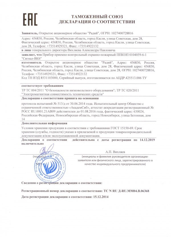 - Прибор приемно-контрольный охранно-пожарный Сигнал-ВК-6