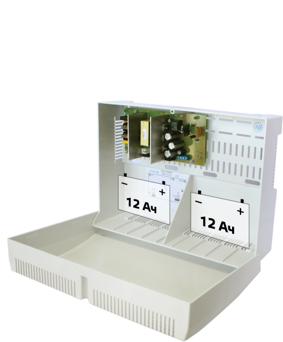 24В, 4,5 А, кратковременно и в режиме резерва до 5 А, Пластиковый корпус под 2 АКБ 12Ач. Соответствует ФЗ 123 и ГОСТ Р 53325-2012 3 индикатора и информационный выход, защита выхода от перегрузки и КЗ, защита АКБ от глубокого разряда, КЗ и переполюсовки, контроль наличия АКБ, холодный пуск.
