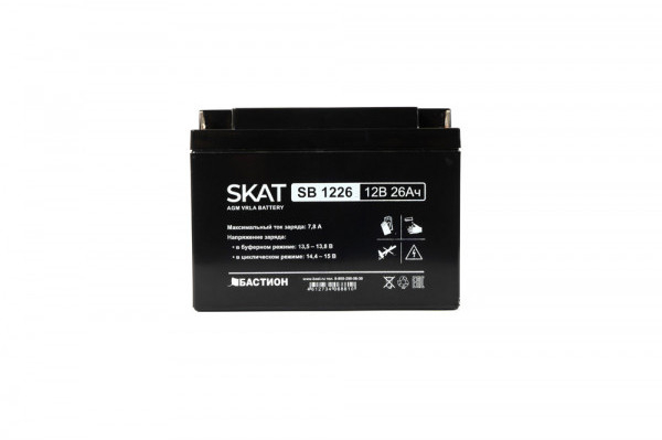 Аккумулятор герметичный свинцово-кислотный необслуживаемый SKAT SB 1226 производится по технологии AGM (Absorbent Glass Mat) с системой рекомбинации газов VLRA и предназначен для использования в составе системы резервного питания.