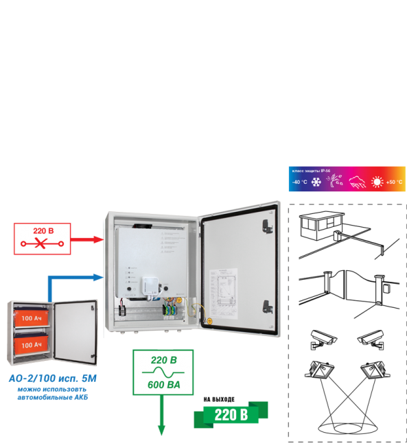 SKAT SMART UPS-600 IP65 SNMP Wi-Fi может быть использован для питания мощных систем видеонаблюдения, устройств аварийного освещения, систем контроля и управления доступом, электроприводов ворот, шлагбаумов, систем видеомониторинга (безопасный город), систем автоматики и телеметрии, а также для электропитания другого электрооборудования.