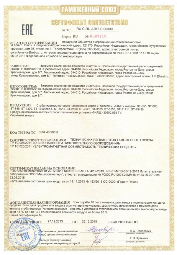 Стабилизатор напряжения общего применения Мощность нагрузки 2525 ВА. Диапазон входного сетевого напряжения 145-260 В. Микропроцессорное управление, защитное отключение при авариях в сети с автоматическим восстановлением, индикация аварийных ситуаций. Линейный индикатор входного напряжения (шкала). Стабилизация релейного типа. Автоматический выключатель. Металлический корпус настенного и настольного исполнения. Аналог China ХХХ-5000 Гарантия 5 лет.