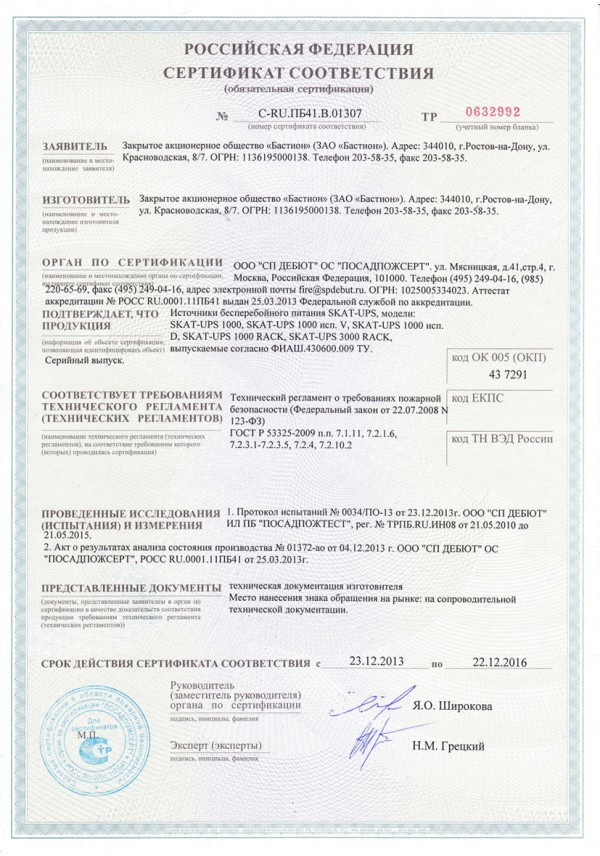 SKAT-UPS 1000 (24V) обеспечивает: