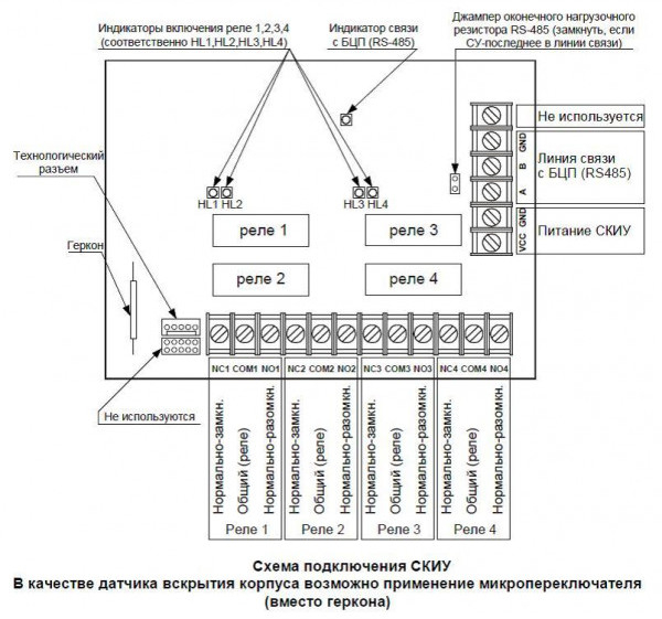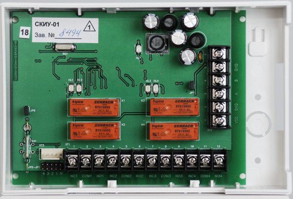 СКИУ-01, корпус IP 20 - сетевой контроллер исполнительных устройств (4 реле НО и НЗ) в пластмассовом корпусе, без встроенной консоли управления, со степенью защиты - IP20 входит в состав ИСБ "Индигирка".