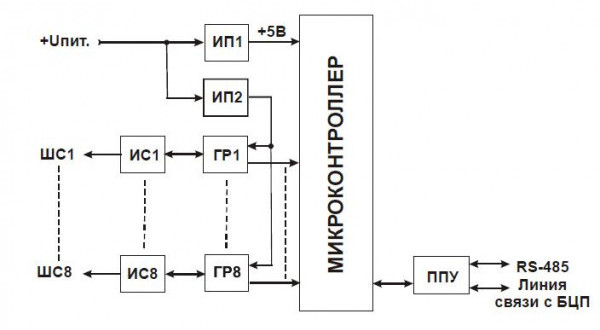 Контроллер ШС сетевой, 8 оптоизолированных входов для технологической сигнализации, для Рубеж-08