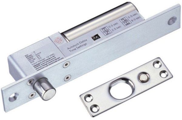 Врезной соленоидный электромеханический замок. Напряжение DC 12V, 900mA. Автоматическое открытие при снятии напряжения. Встроенный датчик положения двери. Регулируемое время открытия 0 sec., 2.5sec., 5sec., 9sec. Вес 0,86 кг. Замок 200mm x 32mm