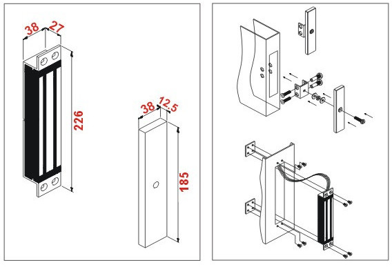 226х38х27(замок); 185х38х12,5 (якорь)