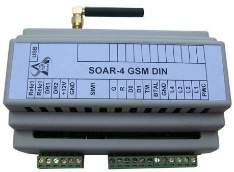 SOAR-4-GSM DIN - концентратор охранно-пожарной и тревожной сигнализации на 4 ШС предназначен для работы в составе комплекса технических средств безопасности и диспетчеризации, а также мониторинговой пультовой системы.