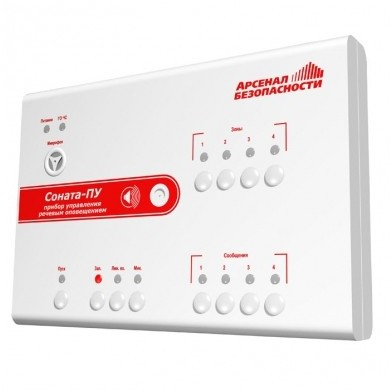 Соната-ПУ - прибор управления речевым оповещением (пульт управления) для трансляции речевой информации через усилители низкой частоты - Соната-К-120У или активные речевые оповещатели - Соната-УП, управление 4-мя независимыми зонами оповещения, контроль соединительных линий в дежурном режиме, линия управления от ППКП, трансляция ГО и ЧС, встроенный микрофон, напряжение питания - (10 - 13,6)В, количество перезаписываемых сообщений - 4 по 20 сек., частотный диапазон оповещения - 80-12000 Гц, габариты - 235х175х40мм, масса - 0,56кг, температура эксплуатации - от -10 до +400С, степень защиты - IP30, наличие светодиодной (14шт.) индикации.