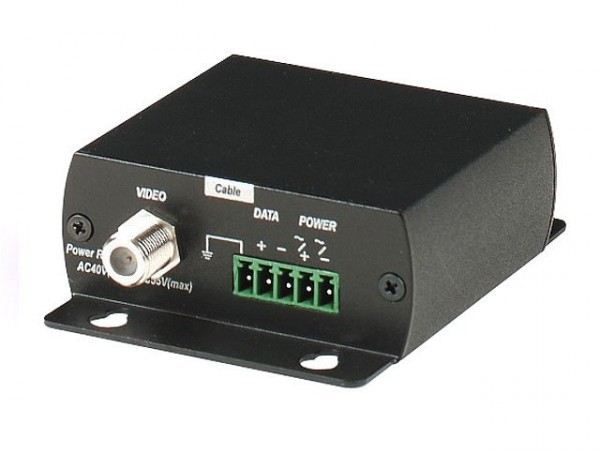 Устройство грозозащиты цепей видео, питания и данных. Видео 1 вход (F-мама), 1 выход (F-мама) Питание и данные 1 вход (клеммы), 1 выход (клеммы). Максимальное напряжение цепи питания AC 40 B / DC 56 В.