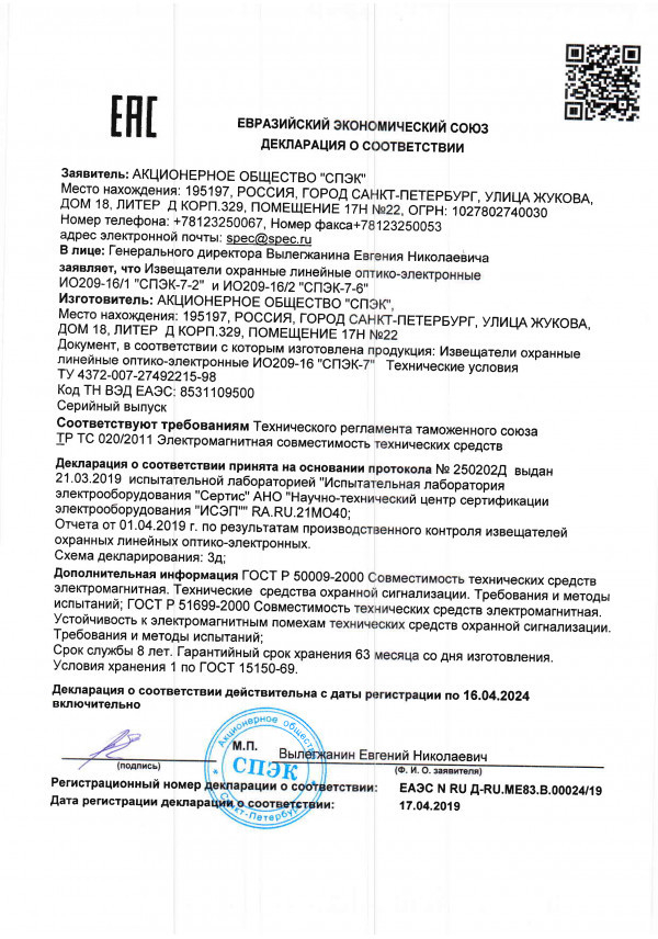 - Извещатель охранный линейный оптико-электронный СПЭК-7-30-70