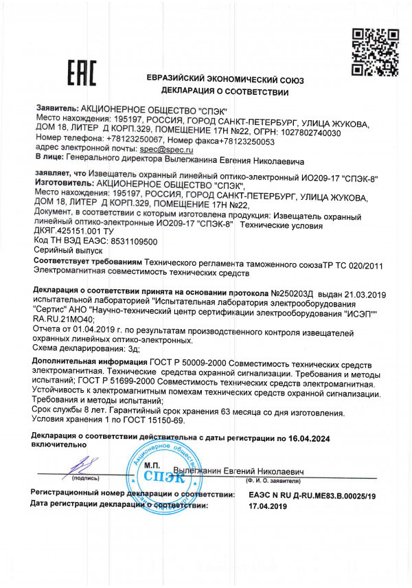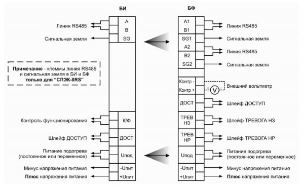 СПЭК-8 - извещатель охранный линейный оптико-электронный 2-х лучевой (сдвоенный ИК-луч) активный в составе блоков: излучателя и приёмника предназначен для обнаружения проникновения через периметр охраняемого объекта и формирование извещения о тревоге путем переключения (1 НО и НЗ) выходных контактов оптоэлектронного реле.