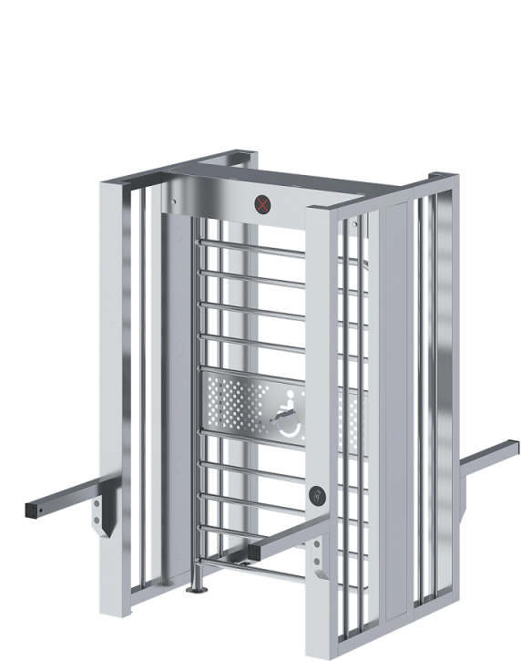 - Полноростовой турникет с единой калиткой предназначен для организаций с посетителями-инвалидами и людьми с колясками, а также для предприятий с необходимостью проноса крупногабаритных предметов.