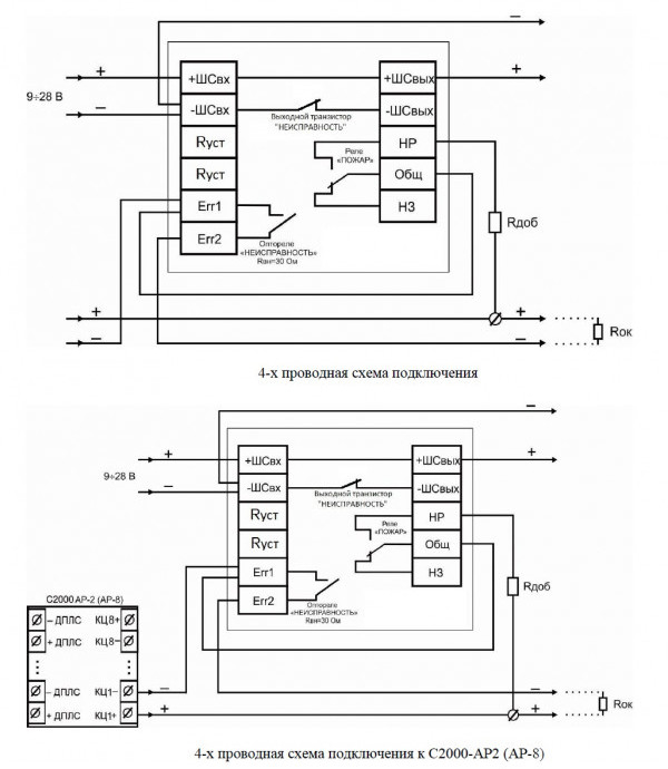 Данный извещатель совместим с любым ППКП, электрические цепи которых имеют параметры, позволяющие подключение данного извещателя.
