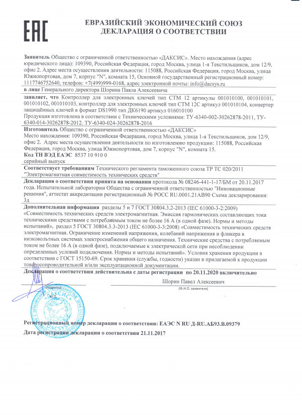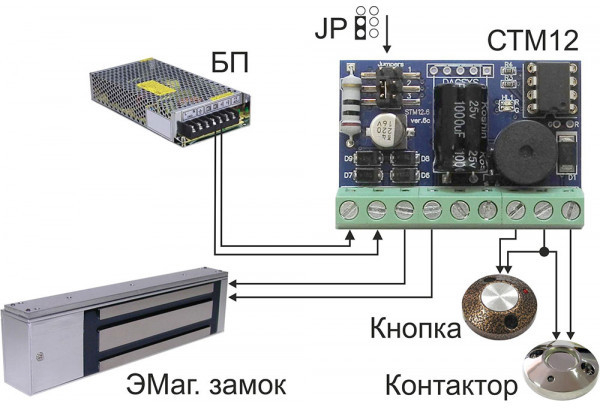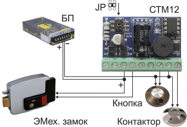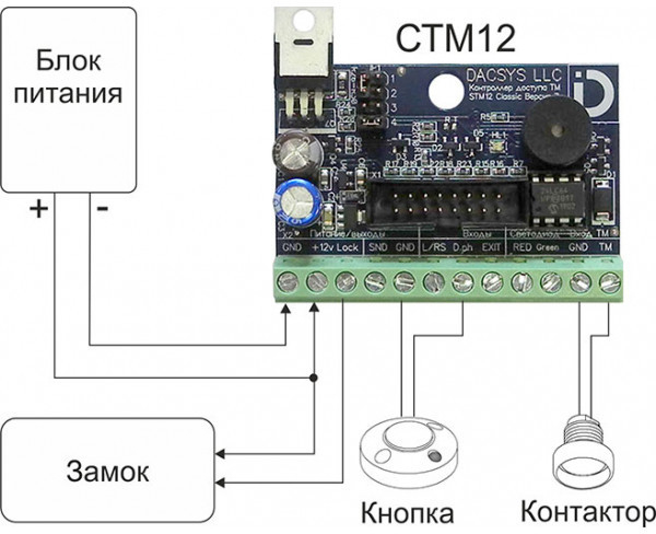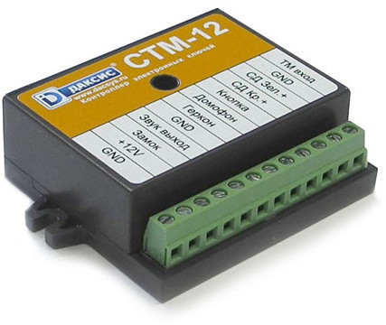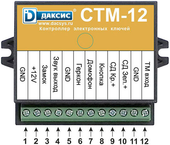 СТМ12/STM12 (вер.6 и 7) - контроллер электронных ключей предназначен для управления электромагнитным или электромеханическим замком с помощью кнопки разблокировки замка ("ВЫХОД") и электронных ключей - идентификаторов iButton (ТМ) производства компании Dallas Semiconductor или ключей, совместимых с ними по протоколу.