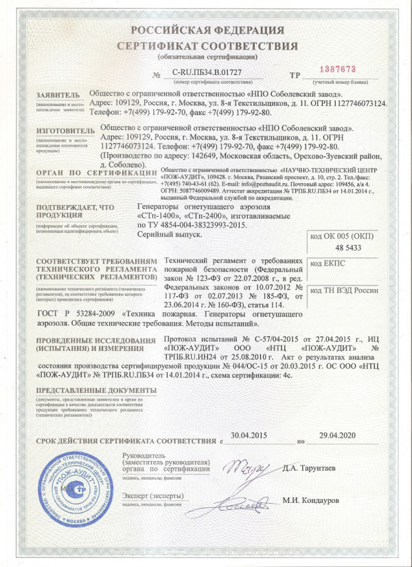 СТп-1400 - генератор огнетушащего аэрозоля предназначен для тушения пожара на подвижном составе РЖД , включая электро и дизель поезда, локомотивы.