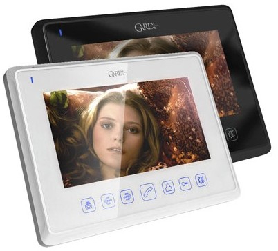 7 TFT Цветной дисплей /4-х проводный/ HandsFree/ накладной тип крепления/ подключение 2 вызывных панелей )/ 2 монитора в паралель сфункцией Интреком/ Внешний блок питания/ Размер 210x160x22мм/ формат изображения 16 9, выбор из 12 мелодий звонка, режим не беспокоить. Регулировки Звук, Звонок, Яркость, Контрасность, Цветность. ДВА ЦВЕТА Белый и Черный