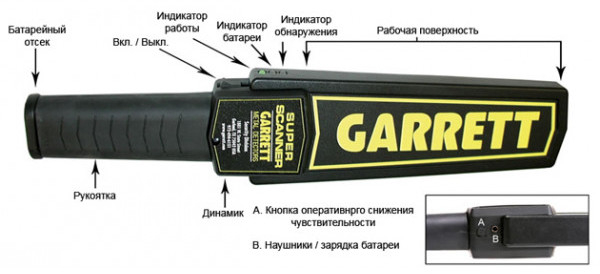 Super Scanner (GARRETT) - ручной металлодетектор предназначен для выявления металлических предметов при досмотре людей, багажа и т.п. во время проведении массовых мероприятий и в общественных местах (театры и кинотеатры, музеи, школы, библиотеки, офисные здания и т.д.)