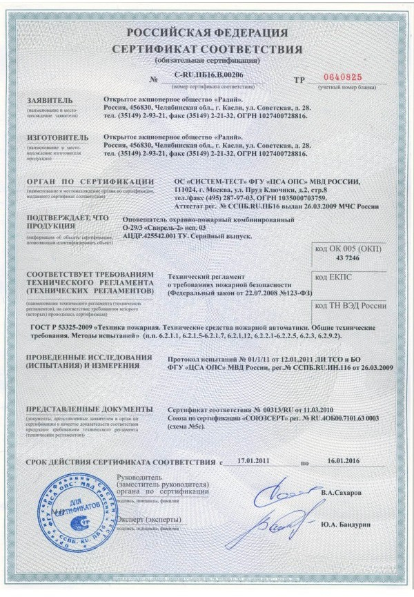 - Оповещатель пожарный светозвуковой Свирель-2 исп. 03