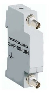 SVP-08-DIN - устройство в корпусе с креплением на DIN - рейку для защиты передающего и приемного оборудования от грозовых разрядов, высоковольтных импульсных наводок и сильных электромагнитных полей обеспечивает шунтирование паразитных электростатических зарядов на шину заземления не только с центральной жилы, но и с оплетки коаксиального кабеля.