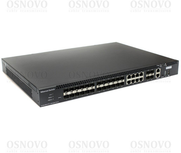 Сетевой коммутатор управляемый L3; порты 16 x GE SFP (1000Base-X) + 8xGE Combo (RJ45 + SFP) + 4 x 10G SFP, Uplink, Консольный порт, Поддержка Jumbo Frame 10K, IGMP Snooping, монтаж в 19" стойку, крепление в комплекте. AC 90-253В, 10Вт Встроенная грозозащита 6кВ; -10...+50°C; 440x44x320мм.