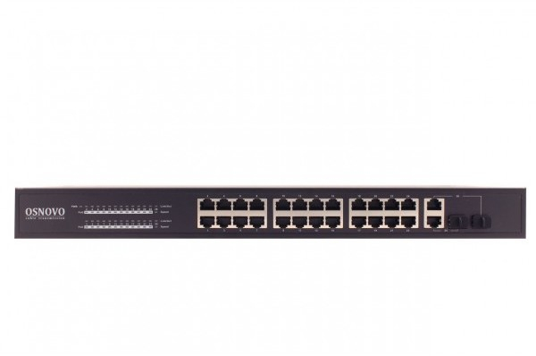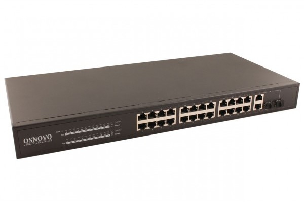 PoE коммутатор Fast Ethernet на 26 портов. Порты: 24 x FE (10/100 Base-T) с поддержкой PoE (IEEE 802.3af/at), 2 x GE Combo Uplink (RJ45 + SFP).