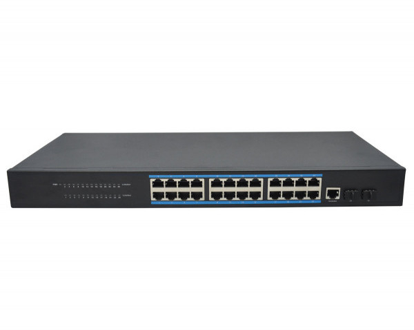 Порты: 24 x GE (10/100/1000Base-T) + 2 x GE (SFP 1000Base-X), Консольный порт.