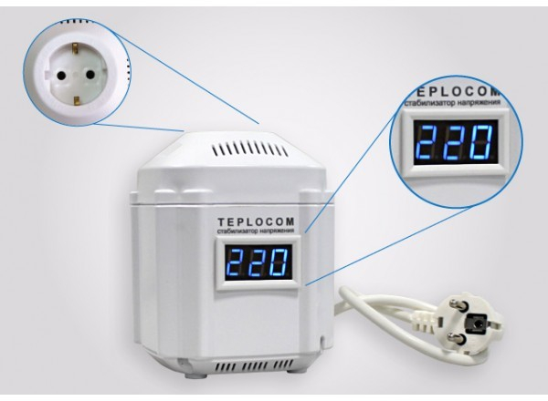 TEPLOCOM ST-222/500-И - Стабилизатор для газовых котлов отопления с открытой и закрытой камерой сгорания предназначен для работы с большими пусковыми токами нагрузки и большим диапазоном входного переменного напряжения сети.