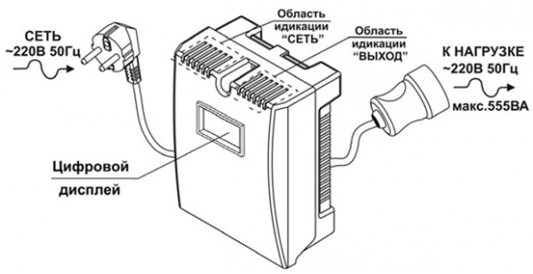 Изделие оснащено цифровым дисплеем, отображающим сетевое напряжение.