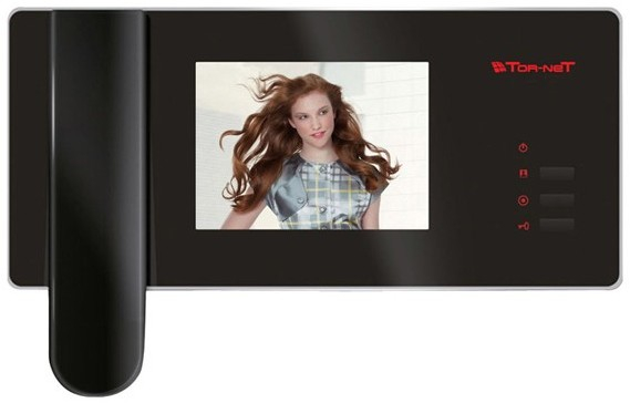 Монитор видеодомофона цветной, до 5 мониторов и 2 дверных блоков в одной системе, диагональ экрана 4.3 , питание 230V AC, цвет корпуса - чёрный.