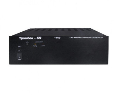 Тромбон-БП-21 - блок резервного питания и коммутации предназначен для обеспечения резервным низковольтным питанием (24 - 28В) усилителей высокой мощности (Тромбон – УМ-4-360, Тромбон – УМ-4-480), входящих в состав системы оповещения и управления эвакуацией, а также другого оборудования.
