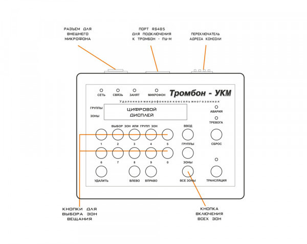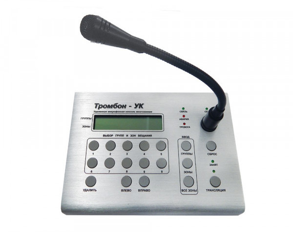 Тромбон-УК - удаленная консоль для дистанционного управления системой оповещения, построенной на базе приборов управления: Тромбон - ПУ-4, Тромбон - ПУ-8, Тромбон – ПУ-М.