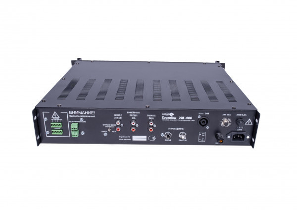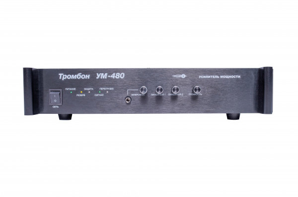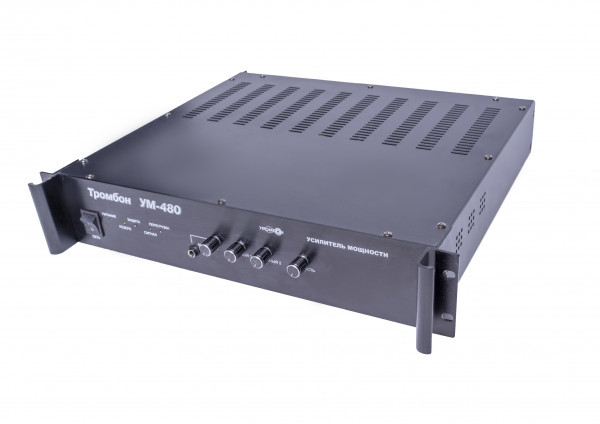 Тромбон-УМ-480 - усилитель высокой мощности предназначен для усиления звуковых сигналов при работе в составе систем оповещения людей о пожаре различных зданий.