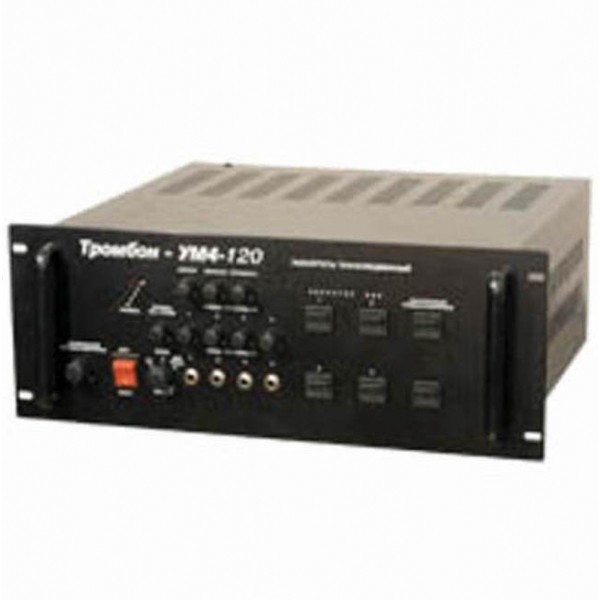 Усилитель средней мощности питание от внешнего источника - 24В и 220В мощность ном/пик 120/160 входов - 4 выходное напряжение 30, 60, 120 В частоты - 80-10000 Гц габариты - 480х330х180 мм