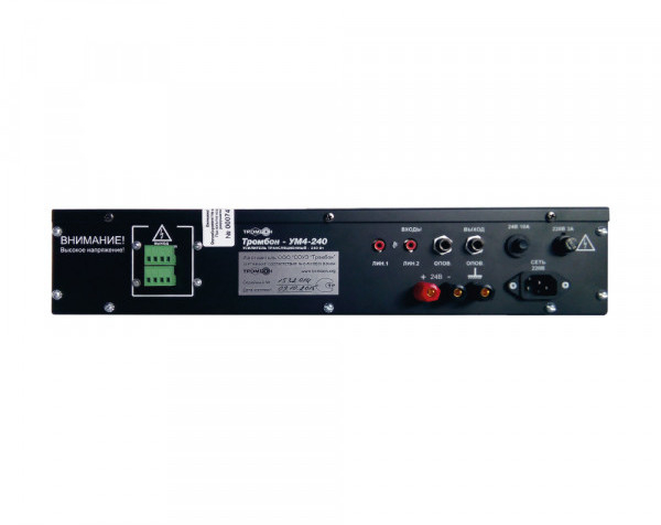 Тромбон-УМ-4-240 - усилитель средней мощности предназначен для усиления звуковых сигналов при работе в составе систем оповещения людей о пожаре различных зданий.