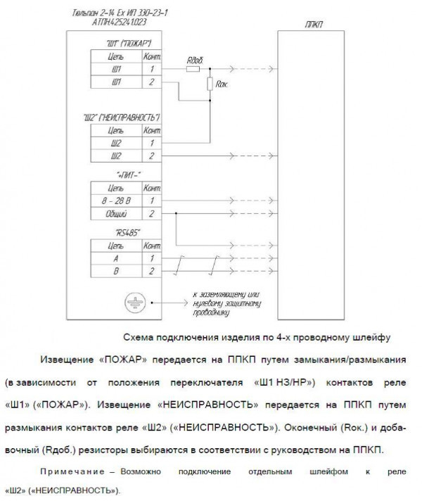 Данный извещатель совместим с любым ППКП, электрические цепи которых имеют параметры, позволяющие подключение данного извещателя.