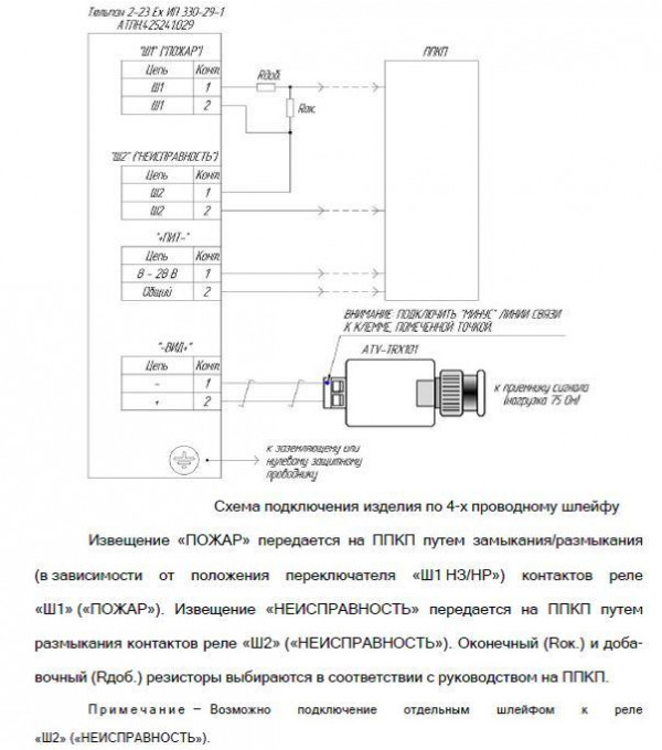 Данный извещатель совместим с любым ППКП, электрические цепи которых имеют параметры, позволяющие подключение данного извещателя.