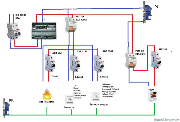 - электроприборы, освещение – выключатели с характеристикой В;